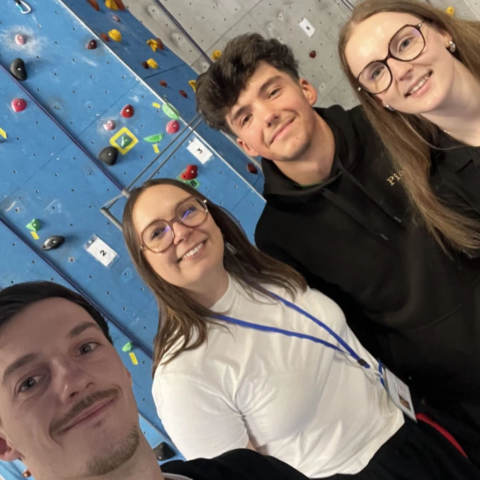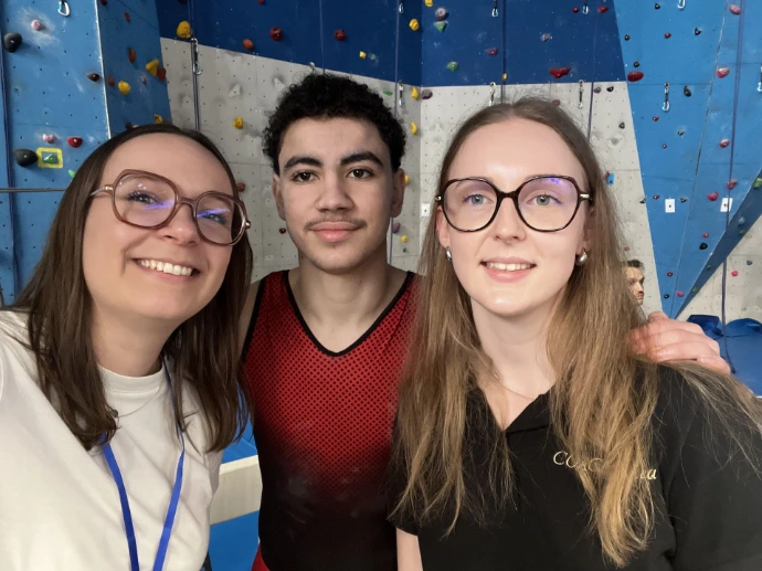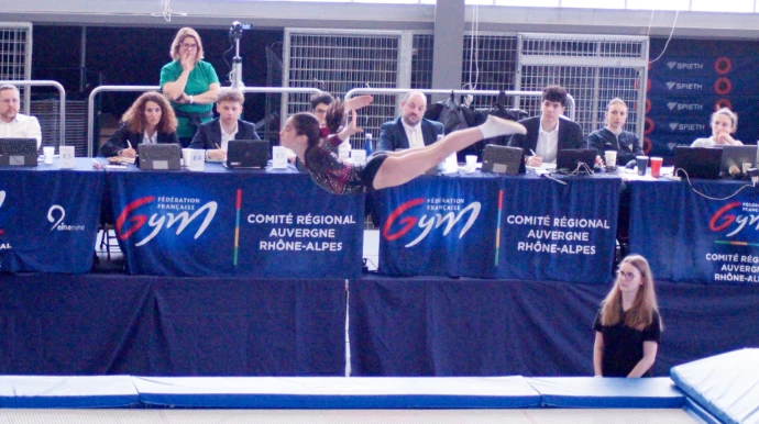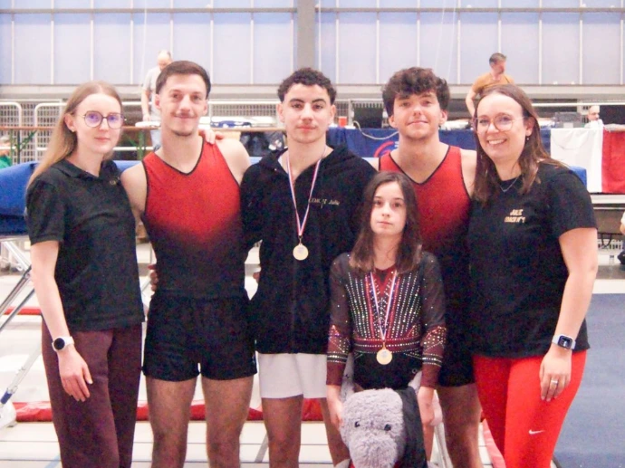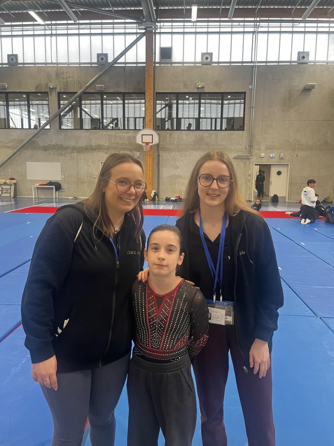 Lors du week-end des 21 et 22 mars 2026, l'équipe compétition a accompagné nos quatre athlètes engagés en filière Nationale : Andy, Hichem, Pierre et Lou. Partis le vendredi, nous sommes arrivés à Montluçon après deux heures de route pour l'entraînement sur plateau. La salle était partagée avec le tumbling et la gymnastique acrobatique, ce qui a été une belle occasion pour beaucoup de nos compétiteurs de découvrir ces sports de plus près !